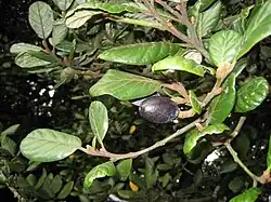 The fruit is variable from one species to other' in some species it is a drupe, large and globose green, 12 cm in diameter with a tip at the apex. In other species, the fruit is an erect, plum-like, dark purple or sometimes elliptical to ovoid drupe, dark purple when ripe, and covered in a waxy bloom. In others, the fruit is a black, round drupe with a glaucous bloom, with a single seed inside. Seed dispersal for many Beilschmiedia species is by birds that swallow them, so they are shaped to attract the birds. The one-seeded fruits are an important food source for birds, including being a favorite food of the native pigeons in New Zealand.