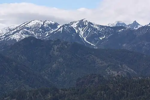 The Alpine Lakes Wilderness features some of the most rugged topography in the Cascade Range with craggy peaks and ridges, deep glacial valleys, and granite walls spotted with over 700 mountain lakes.[5] Geological events occurring many years ago created the diverse topography and drastic elevation changes over the Cascade Range leading to the various climate differences. The elevation range of this area is between about 1,000 feet (300 m) in the lower elevations to over 9,000 feet (2,700 m) on Mount Stuart.
