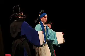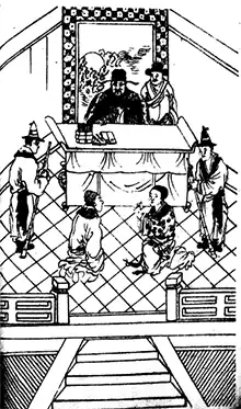 Shi Yukun was a storyteller who performed in Beijing, the Qing dynasty capital, between 1810 and 1871.[1] He gained particular fame telling the legends of Song dynasty official Bao Zheng (999–1062), also known as Bao Longtu (包龍圖; "Dragon-Pattern Bao"). Shi's performances, accompanied by sanxian (lute) playing, would attract audience of thousands.[2] This story proved so popular that publishing houses and sellers began acquiring hand-written manuscripts to be circulated and sold.[3] One such copy, apparently a transcript of another storyteller's oral narratives, contained this reference of Shi (translated by Susan Blader):[4]