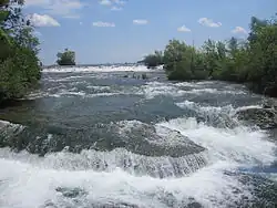 Accessible from Goat Island, the Three Sisters Islands are located just beyond the Canada/U.S. border in Niagara Falls, New York.[1] The islands are named after Celinda, Angelina, and Asenath Whitney (all three of whom are buried in Oakwood Cemetery in Niagara Falls, NY), daughters of General Parkhurst Whitney of Niagara Falls, New York.[2][3] General Whitney (also buried in Oakwood Cemetery), was a prominent early settler of Niagara Falls, New York. The General moved to Niagara Falls, N.Y. in 1810 and is best known as the founder and operator of the Cataract House Hotel located near the upper rapids just above the falls. General Whitney's daughters are believed to be the first settlers to have trekked to the three small islands.