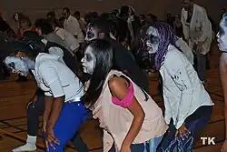 The idea to create an international event, in which participants simultaneously emulate the zombie dance in the music video of Michael Jackson's "Thriller", came about in 2006.[1] At the time, a group of 62 zombies set a Guinness World Record for Largest Thriller Dance in one location, at a community hall in Canada.[1] The event garnered worldwide attention. The world record, however, was subsequently broken, when 1722 people from 52 cities on five different continents emulated Jackson's zombie dance.[1] The event—part-charity fundraiser, part-world record attempt—evolved into Thrill the World, one of the world's largest simultaneous dance events.[1] Ines Markeljevic, a dance instructor, aimed to unite the world in dance and followed this event up with Thrill Toronto.[2] The popularity of the event spread, and it visited Croatia, Honduras, New Zealand, the Philippines and Sierra Leone.[2] The majority of people discovered Thrill the World through their official website and YouTube, where Markeljevic posted instructional step by step videos on the Thriller dance.[2] Markeljevic stated that she chose Thriller because it has a special hold on people. "Regardless of where people are in the world, they love Thriller, they want to do the dance."[2]