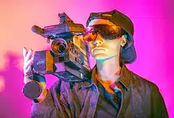 Through the Viewfinder (TtV) photography is a photographic or videographic technique in which a photograph or video or motion picture film is shot with one camera through the viewfinder of a second camera. The viewfinder thus acts as a kind of lens filter.[1][2][3] The most popular method involves using a digital camera as the image taking camera and an intact twin-lens reflex camera (TLR) or pseudo-TLR as the "viewfinder" camera.[4] TLRs typically have square waist-level viewfinders, with the viewfinder plane at 90 degrees to the image plane. The image in a TLR viewfinder is laterally reversed, i.e. it is a mirror image. Most photographers use a cardboard tube or other apparatus connecting the two cameras in order to eliminate stray light and prevent reflections from appearing on the viewfinder glass or on the lens of the imaging camera.