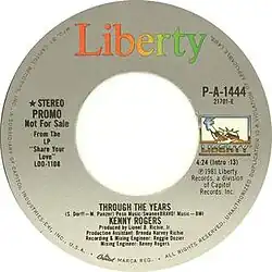 "Through the Years" is a song written by Steve Dorff and Marty Panzer, and recorded by American country music artist Kenny Rogers. It was released in December 1981 as the fourth and final single from the album Share Your Love.