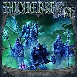 Thunderstone is a fantasy deck-building card game series designed by Mike Elliott, with artwork by Jason Engle. It was first published by Alderac Entertainment Group in 2009. Each card has dimensions of 6.3 by 8.8 centimetres (2.5 in × 3.5 in). It has been translated into several languages.[1]