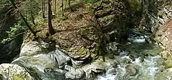 The Thur waterfalls are two cascades located on the river Thur approximately ten minutes walking from the village square of Unterwasser in the canton of St. Gallen, Switzerland, The water cascades down from steep rock faces, and on highest point drops from 23 metres (75 ft).[1] The road along the waterfalls was developed in 1927 and includes three observation decks.