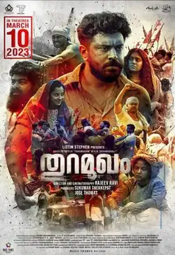 Thuramukham (transl. Harbor) is a 2023 Indian Malayalam-language period drama film directed and filmed by Rajeev Ravi and written by Gopan Chidambaran. It is based on the play of the same name by K. M. Chidambaran, Gopan's father.[3][4][5] The film stars Nivin Pauly, Indrajith Sukumaran, Joju George, Arjun Ashokan, Sudev Nair, Manikandan R. Achari, Senthil Krishna, Nimisha Sajayan, Poornima Indrajith, and Darshana Rajendran in prominent roles. It presents the harbor workers protest against the Chappa labor allocation system practiced during the 1940s and 50s in Cochin district of Kerala.