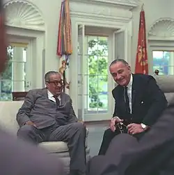 ![]() Marshall (left) and President Johnson meet in the Oval Office of the White House on June 13, 1967 (shortly before the announcement of the nomination) | |