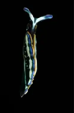 | A live individual of Thuridilla hopei, head end towards the bottom | |