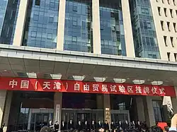 Tianjin Free-Trade Zone (Tianjin FTZ, colloquially known as 天津自由贸易区/天津自贸区 in Chinese), officially China (Tianjin) Pilot Free-Trade Zone (Chinese: 中国(天津)自由贸易试验区; pinyin: Zhōngguó (Tiānjīn) Zìyóu Màoyì Shìyànqū) is a free-trade zone in Tianjin, China. It is the only free-trade zone in North China.[1][2] The zone covers three areas — Tianjin Airport Economic Area, Dongjiang Free Trade Port Zone and Binhai New Area Central Business District.[3][4]