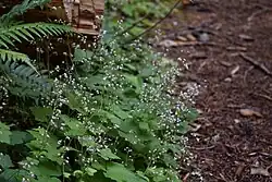Tiarella trifoliata, the three-leaf foamflower, is a species of flowering plant in the family Saxifragaceae.[6] The specific name trifoliata means "having three leaflets",[7] a characteristic of two of the three recognized varieties. Also known as the laceflower or sugar-scoop,[8] the species is found in shaded, moist woods in western North America.