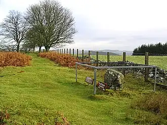 At some point after 1790 a rough stone was placed on the grave with "I H / I THOMSON / FS 1790"[2] or "H.L. I.T. F.S. 1790" carved on it ("Here lies Isabella Thomson for suicide [or 'Felo de se'] 1790").[1] Thomas Craig-Brown, in his two-volume History of Selkirkshire (1886), stated that the stone had been placed there by Michael Stewart, a dyker in the service of the Duke of Buccleuch, who "reopened the grave that he might repair the indecent haste shown at her burial. In the woman's pocket he found one penny and one farthing."[7]