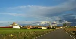Tierra de Campos ("Land of Fields") is a large historical and natural region or greater comarca that straddles the provinces of León, Zamora, Valladolid and Palencia, in Castile and León, Spain. It is a vast, desolate plain with practically no relief, except for some wide undulations of the terrain.