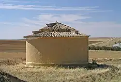 "Tierra de Campos" is located on a fertile, elevated plateau with an average height of around 720 metres (2,360 ft), its geography is typical of the Meseta Central. The ground is mostly made up of quite compact clay. The climate is continental with long, cold winters and short, hot summers. Rivers naturally irrigating the area are sparse and traditionally the land in Tierra de Campos has been used for dryland farming. The Channel of Castile, which cuts across this comarca, was developed for transport purposes but developed into an irrigation system. Some of the wetlands in Tierra de Campos, like the Laguna de la Nava de Fuentes and the Lagunas de Villafáfila, are important for the ecology of the region.[3] There are few natural forested areas left. The Tierra de Campos is the place with the highest concentration of bustard in the Iberian Peninsula, and possibly in the world.[4]