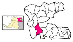 Tigaraksa (Indonesian pronunciation: [t̪iɡaˈrak̚sa]) is a town (kota) and an administrative district (kecamatan) located in the Tangerang Regency of Banten Province on Java (island), Indonesia. The district covers a land area of 55.30 km2 and had 119,245 inhabitants in 2010[2] and 155,557 inhabitants in 2020;[3] the official estimate as at mid 2023 was 163,531.[1] The administrative headquarters of the Regency and of the district are located at the town of Tigaraksa.