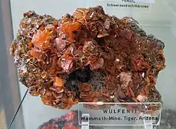 The Tiger or Mammoth mine is a famous mineral locality, especially for matlockite[6] and wulfenite. In addition, the mineral yedlinite is a hydrated oxychloride of lead and chromium found only at Tiger, and first noted on preexisting specimens in 1967.[7]