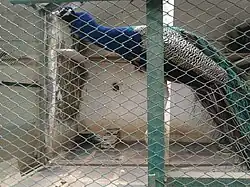 Asiatic lions, Bengal tigers and Indian leopards are kept in separate enclosures and they are viewed by a guided "safari" vehicle.[4] A relatively rare black panther was born here during 2012, and is available for public view as a caged animal.[5]