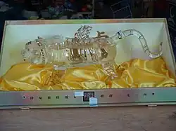 Tiger bone wine (Chinese: 虎骨酒; pinyin: Hǔ gǔ jiǔ) is an alcoholic beverage originally produced in China using the bones of tigers as a necessary ingredient. The production process takes approximately eight years and results in a high alcohol concentration. According to traditional Chinese medicine, the specific use of certain body parts is capable of healing diseases according to the characteristics of the animal used to obtain the product, that is believed to be connected with the disease of the person.[1]