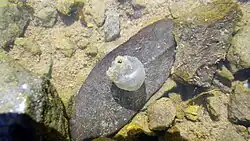 Like all ambystomatids, they are extremely loyal to their birthplaces, and will travel long distances to reach them. Tiger salamanders have been shown to travel up to 255 meters after their breeding cycles are complete, which is likely them returning to their original home ranges.[24] Some research has shown that females will travel farther than males.[25] However, a single tiger salamander has only a 50% chance of breeding more than once in its lifetime. In a study conducted in South Carolina, breeding migrations of adult tiger salamanders began in late October or November for males and November through February for females.[26] The tiger salamander's ideal breeding period is somewhere between the late winter and early spring, once the ground is warm enough and the water is thawed.[13] Males nudge a willing female to initiate mating, and then deposit a spermatophore on the lake bottom. Some males known as sneaker males will mimic female behavior in order to trick females in taking their spermatophore without alerting the male rival.[27] There appears to be no relation between size and mating success.[28] However, females prefer mates with longer tails over mates with shorter tails.[10] It has also been shown that males with longer bodies can compete better against other males, though this has no significant impact on success.[10] About 48 hours after insemination, the female is ready to deposit her eggs in the breeding pool.[13] A female can potentially lay up to one hundred eggs.[29] She carefully attaches the eggs to secure twigs, grass, and leaves at the bottom of the pool to ensure her eggs safety.[30] In about 12–15 days time, the eggs will be fully hatched and ready to mature in the pool.[30] It takes a tiger salamander approximately three months to reach full maturity and leave the breeding pool.[30] The distance the young will travel from the breeding pond has been shown to be correlated with body size, with large individuals traveling just as far as females.[31] Large-scale captive breeding of tiger salamanders has not been accomplished, for unknown reasons.