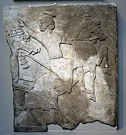 ![]() Tiglath-Pileser III as depicted on a stele from the walls of his royal palace | |