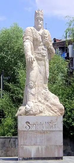 In the early 1990s, a major avenue in central Yerevan, called after the October Revolution was renamed after him.[111] He is the only Armenian king to appear on the Armenian currency,[111] specifically on the 500 dram banknote, which was in circulation from 1993 to 2005.[112]