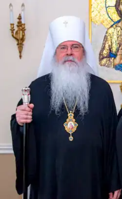 Metropolitan Tikhon (secular name: Marc Raymond Mollard) (b. July 15, 1966, Boston, Massachusetts, United States) is an Eastern Orthodox bishop and the Primate of the Orthodox Church in America, holding the title of Metropolitan of All America and Canada. Previously, he was the ruling bishop of Philadelphia and Eastern Pennsylvania. He was elected as Primate of the Orthodox Church in America on November 13, 2012 at the 17th All-American Council in Parma, Ohio.[1]