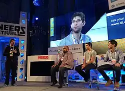 ![]() Tikhon Bernstam speaking at Pioneers Festival in 2013 with Michael Seibel and Aaron Iba of Y Combinator | |