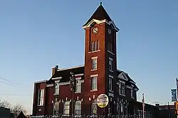 The nearby townships of Tilbury West and Tilbury East were named for the port of Tilbury in the English county of Essex. A settlement, called Henderson (after the local postmaster), was established with the construction of the Canada Southern Railway in 1875. The name of the post office was changed to Tilbury Centre after the adjoining townships and the community was incorporated as a village in 1887. The name changed again to Tilbury a few years later, in 1895,[4] and incorporated as a town in 1910. Tilbury is also home to the largest antique mall in its part of Southern Ontario.[5] Tilbury is also famous for its murals which depict part of its history.[6] In 1998, the town was amalgamated with the City of Chatham, the township of Chatham, Blenheim, Bothwell, Camden, Dover, Dresden, Erie Beach, Erieau, Harwich, Highgate, Howard, Orford, Raleigh, Ridgetown, Romney, Thamesville, Tilbury East, Wallaceburg, Wheatley and Zone to form the municipality of Chatham-Kent.[7] The former town hall at 17 Superior Street is now Tilbury Municipal Centre and Chatham-Kent Police station.