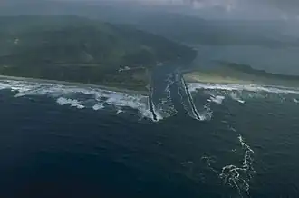The stone breakwater at the mouth of Tillamook Bay is only 400 meters wide.[1] During heavy weather the waves off the harbor entrance can be 10 metres (33 ft) high, making entering the harbor dangerous. During the July 4th weekend of 1980 Richard Dixon, the United States Coast Guard coxswain of a 44-foot Motor Lifeboat, led two daring rescues off the Tillamook Bay breakwater, for which he was awarded two Coast Guard Medals.[2]