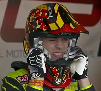 Tim Gajser (born 8 September 1996) is a Slovenian professional motocross racer.[1] He has competed in the FIM Motocross World Championships since 2012. Gajser is a four-time MXGP & MX2 World Champion. Gajser ranks fifth on the all-time list of FIM Motocross World Championship Grand Prix wins.