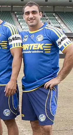 Tim Mannah (born 15 February 1988) is a former Lebanon international rugby league footballer who played as a prop for the Parramatta Eels in the NRL.[3][4]
