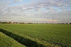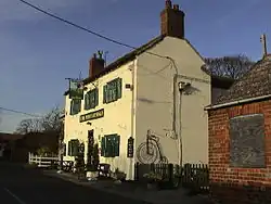 Set within a patchwork of fields in the wetlands of the Lincolnshire Fens, the village is just south of the River Witham and near to the village of Martin. The illustrated signpost with the town name has a plaque above showing the nearby Car Dyke waterway which was once navigable but later drained by small canals to make the surrounding land suitable for farm use.