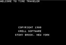 Time Traveler[2][4] is a 1980 fantasy text adventure developed by Krell Software. The game was released on the 16K, Level II TRS-80, Apple II, Commodore PET, and Atari 8-bit computers