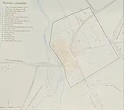 - Large Macellum (indoor market hall) constructed immediately to the north of the Forum, around the site of the Medieval Blue Boar Inn in between today's Highcross Street, Vaughan Way, and Jubilee Square.[16][29]