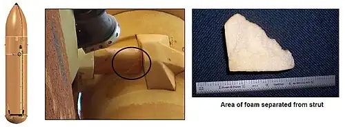An analysis of the inspections revealed the presence of bird droppings on the leading edge of the right wing. The launch director has said he saw droppings in that location before launch.[6] During the crew press conference on landing day the crew joked about the bird droppings indicating that they were still present on the orbiter though rather charred.