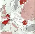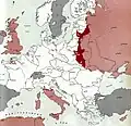 10: Luxembourg is liberated by U.S. First Army. : Two Allied forces meet at Dijon, cutting France in half. : First Allied troops enter Germany, entering Aachen, a city on the border. : Dutch railway workers go on strike. The German response results in the Dutch famine of 1944.