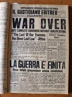 Eritrean newspaper of August 15, 1945 titles: "War is over"