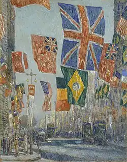 Despite his conviction Germany must be defeated, Wilson went to war to ensure the US played a leading role in shaping the peace, which meant preserving the AEF as a separate military force, rather than being absorbed into British or French units as his Allies wanted.[18] He was strongly supported by AEF commander General John J. Pershing, a proponent of pre-1914 "open warfare" who considered the French and British emphasis on artillery as misguided and incompatible with American "offensive spirit".[19] Much to the frustration of his Allies, who had suffered heavy losses in 1917, he insisted on retaining control of American troops and refused to commit them to the front line until able to operate as independent units. As a result, the first significant US involvement was the Meuse–Argonne offensive in late September 1918.[20]