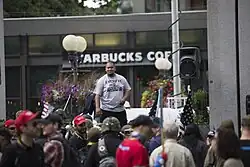 The Proud Boys have been active for several years in the Pacific Northwest of the United States.[33] Starting in September 2017 and continuing into 2018, the Proud Boys participated in several rallies organized by Patriot Prayer in Portland, Oregon, and nearby Vancouver, Washington.[34][35][36] Scenes of violence from one of these rallies was turned into a sizzle reel for the Proud Boys and was circulated on social media.[37][38] Violence erupted at two events in June 2018, leaving five people hospitalized after the far-right march on June 30 devolved into a riot in downtown Portland.[39]
