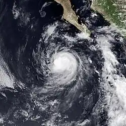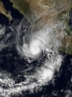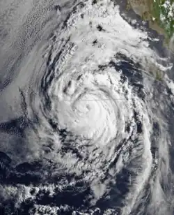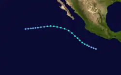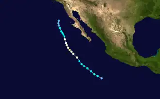 During the 1983 season, a total of 21 named storms formed,[3] which was well-above the long-term average of 15.[4] However, this total was slightly less active than the 1982 Pacific hurricane season, which saw a then-record 22 storms form.[5][6] However, 1983 was at that time the most active season in the Eastern Pacific Hurricane Center (EPHC) warning zone,[7] but this record itself was surpassed during the 1985 Pacific hurricane season,[8] and again in the 1992 Pacific hurricane season.[9] Additionally, 12 storms reached hurricane intensity, which was above the average of eight.[7] Of the 12 hurricanes, eight attained Category 3 intensity or higher on the SSHWS.[4] The season started on May 21 with the formation of Adolph and ended on December 9, with the dissipation of Hurricane Winnie. Lasting 201 days, 1983 was the longest season on record. There were a total of 1,238 storm hours, which was the most in four years.[7] Despite the activity in the EPHC's warning responsibility, only two storms formed in the Central Pacific Hurricane Center (CPHC)'s area of responsibility, both of which stayed depressions.[10] A moderate El Niño was present throughout the season, with water temperatures across the equatorial Central Pacific was nearly 5 °F (0.6 °C) above normal.[11] The Pacific decadal oscillation (PDO) was in a warm phase during this time period.[12] Both of these factors are known to enhance Pacific hurricane season activity. Furthermore, 1983 was in the middle of an era where all but the 1988 Pacific hurricane season was near or above average.[13]