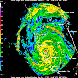 - 3:45 p.m. EDT (1945 UTC) – Hurricane Charley makes its second landfall just West of Fort Myers, Florida with 150 mph (240 km/h) winds.[5]