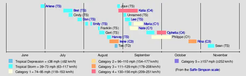 | Timeline of the 2011 Atlantic hurricane season | |||||