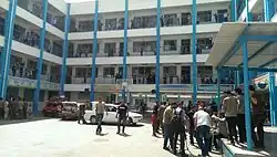 Later in the morning, Israel began dropping leaflets, making telephone calls, and sending texts warning Palestinians in northern Gaza to evacuate by noon.[167] Schools in Gaza have been opened to shelter those who are evacuating their homes; which can shelter up to 35,000 people.[168] Although Hamas discouraged people from following Israel's advice, it is believed that approximately 10,000 did, in fact, leave.[169] After Israel began striking their targets in the north the number of people who left their home was reported at 17,000,[170] totaling about 25% of the town's 70,000 residents.[171]