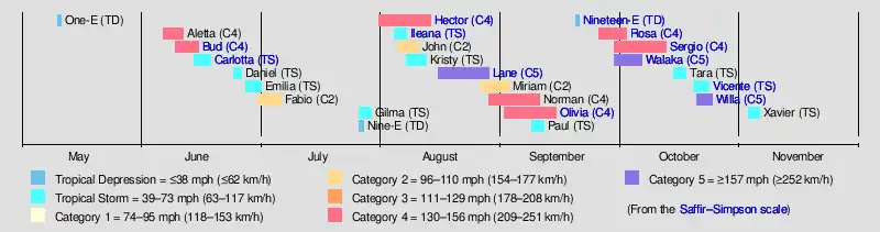 | Timeline of the 2018 Pacific hurricane season | |||||