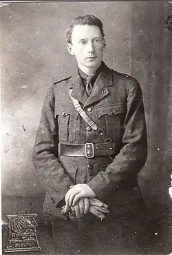 - 7 September 1919: Fermoy ambush: The IRA ambushed British soldiers on their way to a church service outside the Methodist church in Fermoy, County Cork, where the service was being held. The IRA aim was to seize weapons. It was the first such action against the British Army. The ambush involved twenty-three Cork IRA volunteers, under the leadership of Liam Lynch, augmented by Mick Mansfield and George Lennon of Waterford. One soldier, Private William Jones, 2nd Battalion King's Shropshire Light Infantry, was killed.[25] Lynch himself was wounded but survived. Fifteen rifles were captured by the IRA. Following the ambush, approximately 200 British soldiers attacked and looted businesses in the town.[26][27]