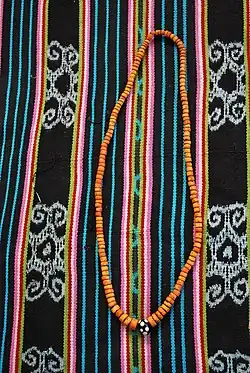 Mutissala beads and tais cloth (here from Viqueque) are typical components of a barlake