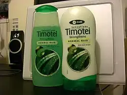 Timotei is a shampoo brand owned by Unilever. The name Timotei comes from the Finnish word for a wild grass called timothy (timotei in Finnish). The Timotei brand was conceived and designed by Lintas Helsinki in Finland.[1] Timotei shampoo was launched in the early 1980s, but some countries only sold Timotei for a short period. The tagline was 'So mild you can wash your hair as often as you like'.