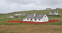 Timsgarry is home to the Baile na Cille Church,[4] and is situated within the parish of Uig.[5] Timsgarry used to have its own chapel, named Capail Mor, further to the west of the present church, which was built in 1724 near to the site of an earlier church, known as Capail Beag.[5][6] The former manse is still present, with the churchyard.[5][7]
