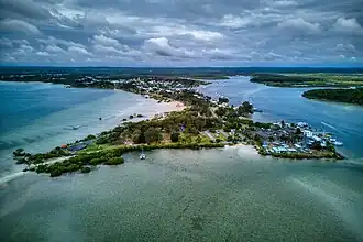 The locality of Tin Can Bay is bounded on the east by the Great Sandy Strait, which separates mainland Queensland from Fraser Island.[5] The area is a Ramsar Convention wetland of International Importance and an Important Bird Area of Australia.[6][7][8]