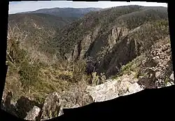 The Tin Mine Falls is a cascade waterfall located in the remote Pilot Wilderness Area within the Kosciuszko National Park in the Snowy Mountains region of New South Wales, Australia. Described from top to bottom, the falls consist of non-segmented tiered cascades over bedrock with a few smaller plunges, followed by a single large plunge into a pool. The falls are recessed into a punchbowl feature making it impossible to view the entire waterfall from a single location on the ground.[4]