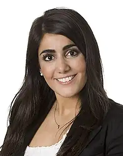 Tina Ghasemi (born 1985) is a Swedish politician for the Moderate Party and member of the Riksdagen between 2014 and 2018.[1] Since 2021, she works as a lobbyist for the company Voi.[2]